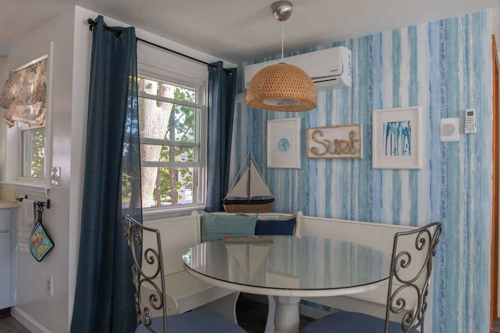 Fully renovated kitchen in 2024! Cottage by the Cove has all of the amenities at home while you're away on vacation, including a new dishwasher, high-end washer/dryer, full AC, and top-rated mattresses. With peekaboo views of Perkins Cove and the ocean, you'll love relaxing in this single-level, open-concept cottage, featuring 2 bedrooms and a modern, full bath with shower. The property provides split unit heating and cooling throughout. Two sizable bedrooms are set back from the main living/kitchen/dining area, providing a separation of space for quiet time. One bedroom features a king-size cooling mattress and smart TV. The second bedroom offers a queen-size Bamboo mattress and views of Perkins Cove. Decks are located at the front and rear of the home, providing ample space to unwind from a busy day at the beach or in town.